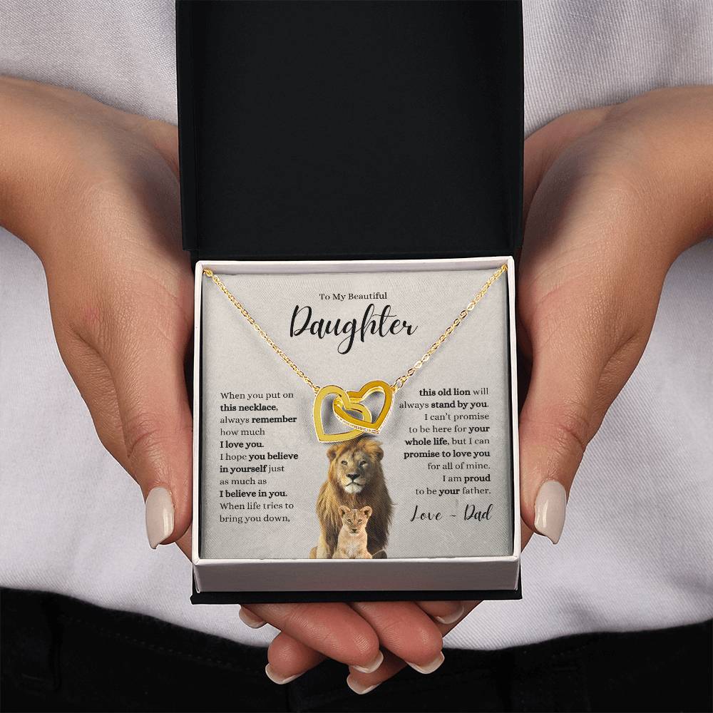 To My Beautiful Daughter; When you put on this necklace, always remember how much I love you. I hope you believe in yourself just as much as I believe in you. When life tries to bring you down, this old lion will always stand by you. I can't promise to be here for your whole life, but I can promise to love you for all of mine. I am proud to be your father. Love, Dad
